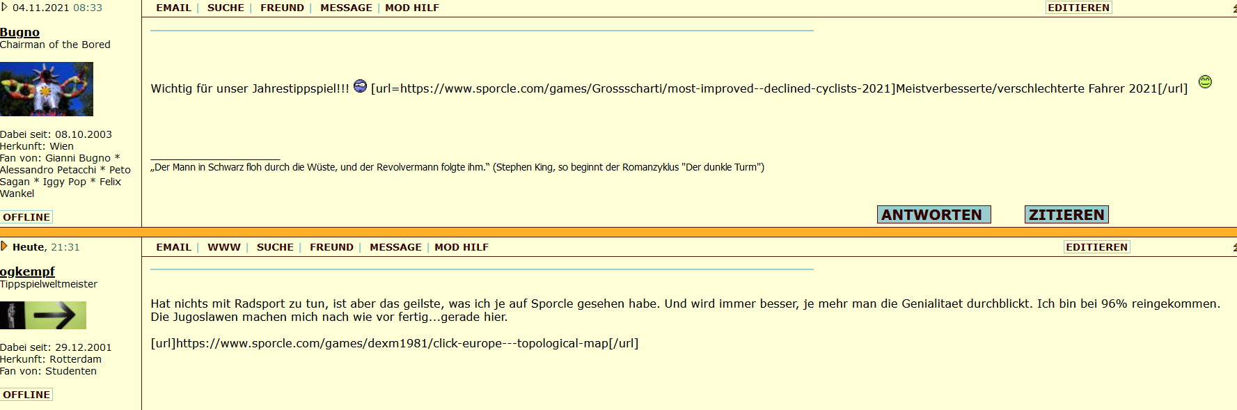 Und hiermit ein großes Dankeschön an den Mann, der die Board-Software upgedatet, sodass sie auf dem neuen Server wieder lauffähig ist.
